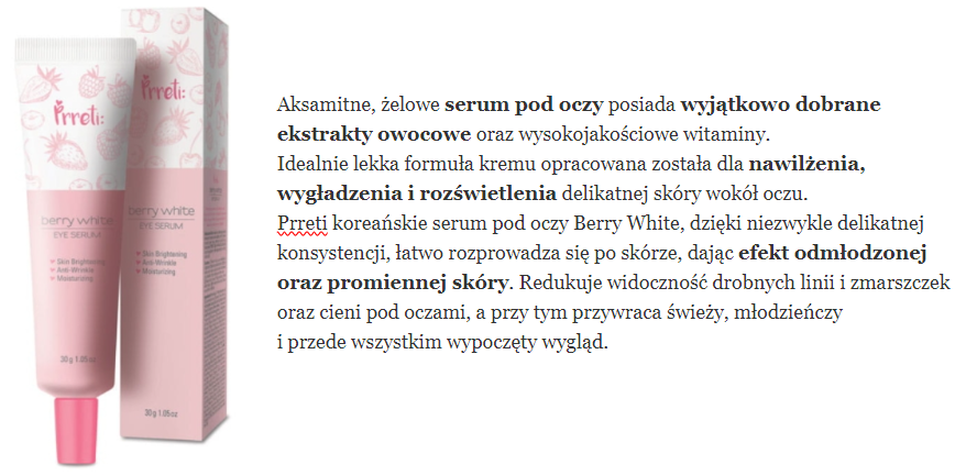 skład i opinie PRRETI Berry White Eye Serum (Rozjaśniające serum pod oczy z ekstraktami owocowymi i witaminami)