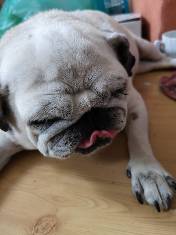 Na razie mamy dokarmiać Kumoka warzywnymi „sloiczkami” dla dzidziusiów. Mamy też mnóstwo nowych zaleceń, badań i spraw do ogarnięcia. Ale aktualnie musimy zrobić przerwę w wycieczkach do weterynarzy, bo jesteśmy bankrutami, a mopsia skarbonka została wyczyszczona do zera.