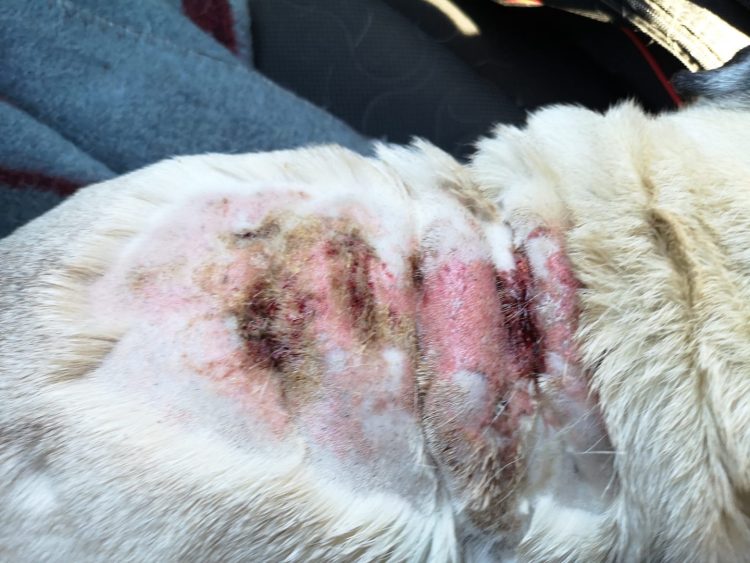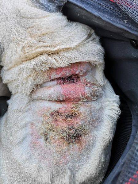 Niestety podczas brania Palladii skóra robi się tak delikatna i wrażliwa, że doszło do poparzenia chemicznego, które nie chce się goić (także przez Palladię). Trzymajcie proszę kciuki za naszą dzielną dziewczynkę ❤️