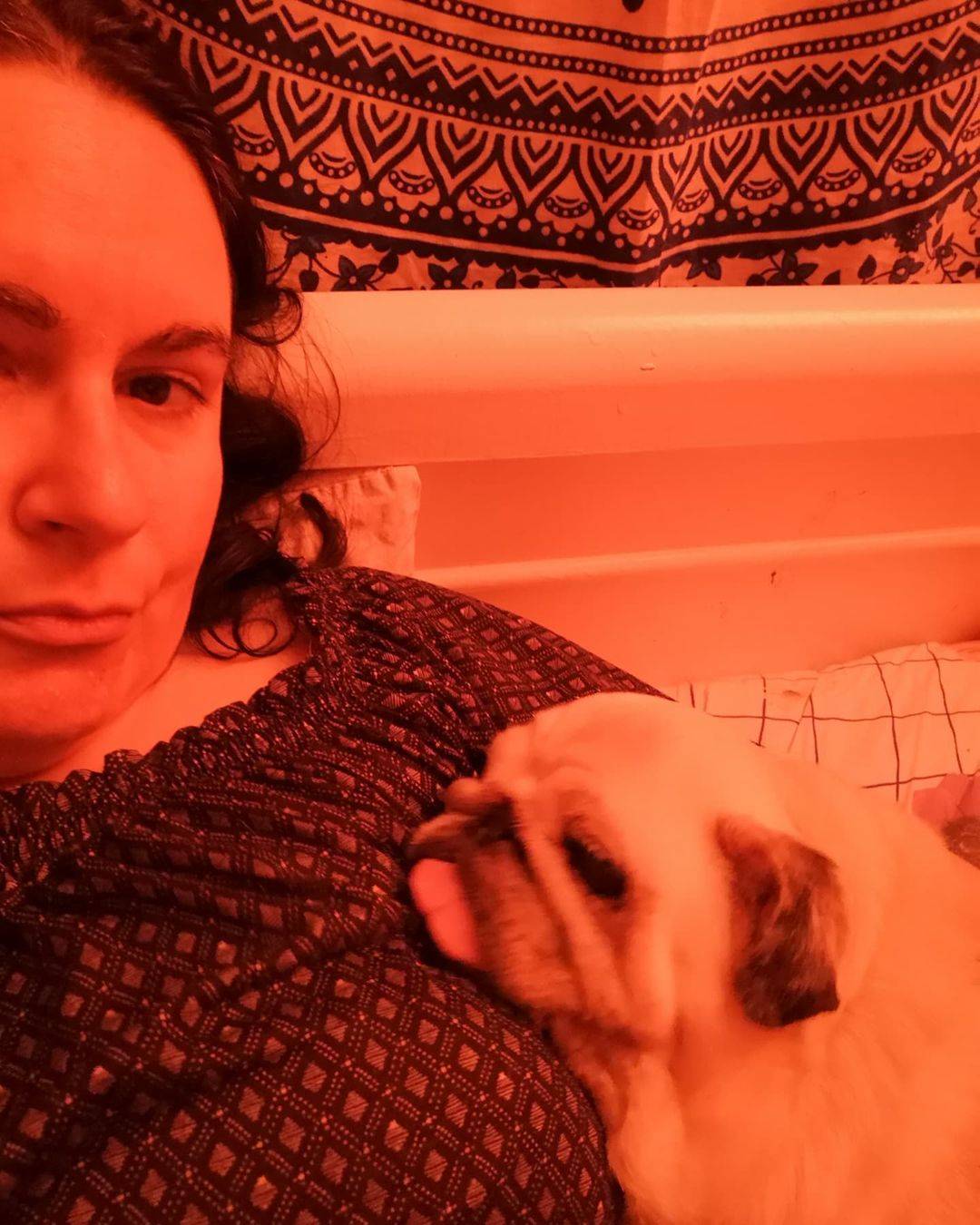 Zaledwie 2 tygodnie temu jej badania krwi, usg jamy brzusznej i echo serca wyszły zadziwiająco dobrze. I nagle, ze 2 dni po badaniach, Kumok straciła apetyt, przestała podnosić się z posłania, jest obojętna na wszystko, ciągle śpi, momentami niejest w stanie utrzymać się na łapkach, dosłownie przelewa się przez ręce. Oprócz tego zero innych objawów, żadnych sensacji z przewodu pokarmowego, nic. Po prostu mops nagle przeszedł w stan stand-by.