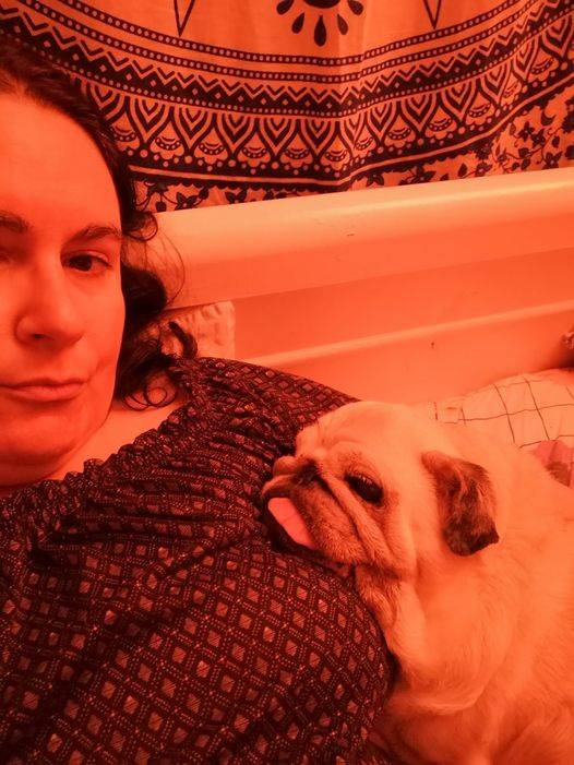 Teraz jest trochę lepiej, ale Kumuś nadal stęka i popiskuje 😰 Niestety nie możemy jej podać leków, które w miarę szybko rozwiązałyby problem, ponieważ u Kumoczka mogą one spowodować pogłębienie arytmii serca (Kumok ma blok przedsionkowo-komorowy typu Mobitz II).