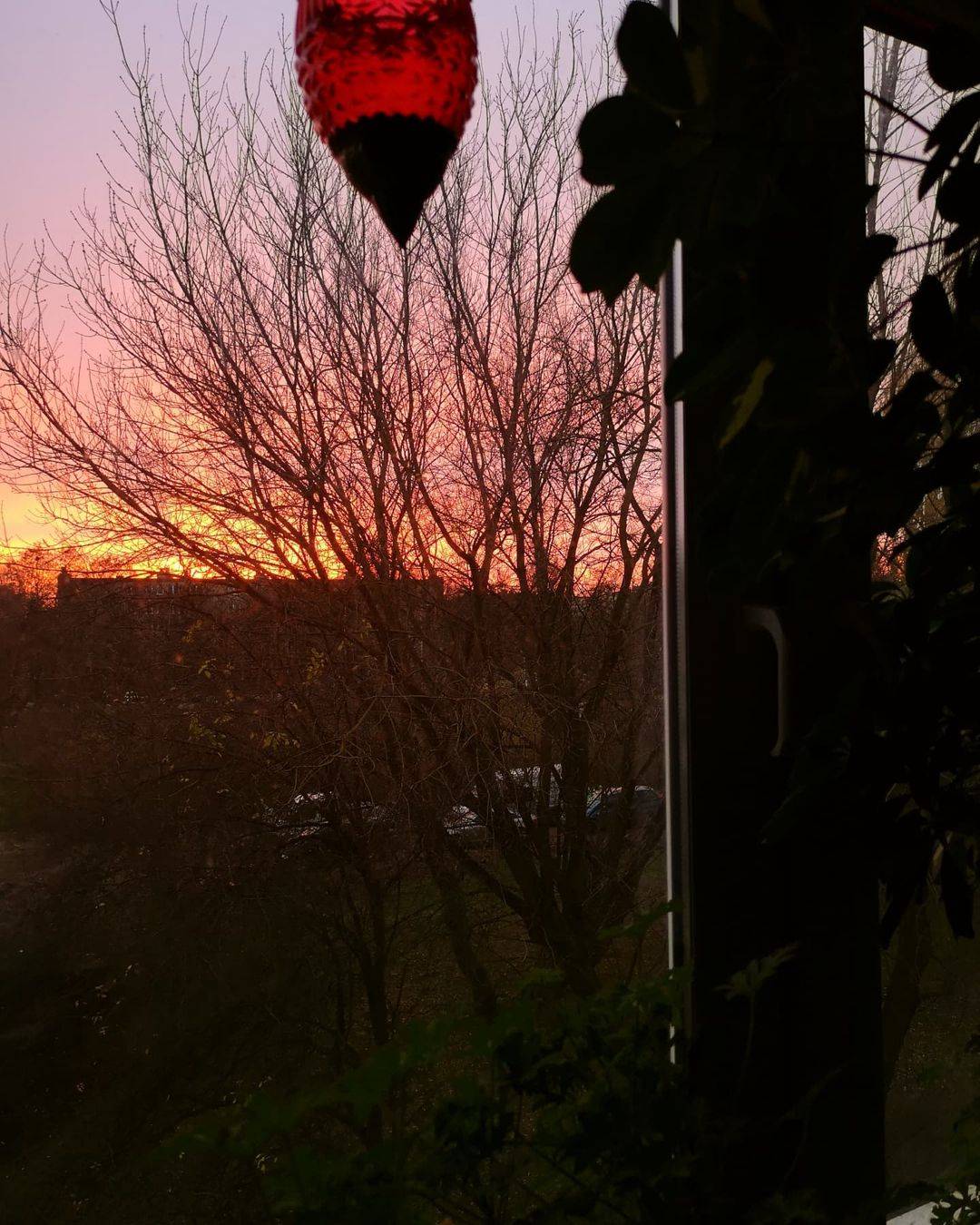 świt. kawa po nocy pełnej złych snów oraz padający dyskretnie śnieg.