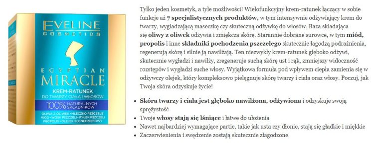 skład i opinie EVELINE Egyptian Miracle Krem-ratunek do twarzy ciała i włosów