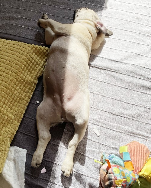 Oczywiście, można mówić, że mopsy mają to w genach, ale „robienie kreta” w wykonaniu Kumoka było bardzo charakterystyczne i dokładnie tak samo – zgodnie ze sztuką i najlepszymi praktykami – wykonuje je teraz Małe Czuczu. Wniosek? Kumok musiała ją tego nauczyć ;))