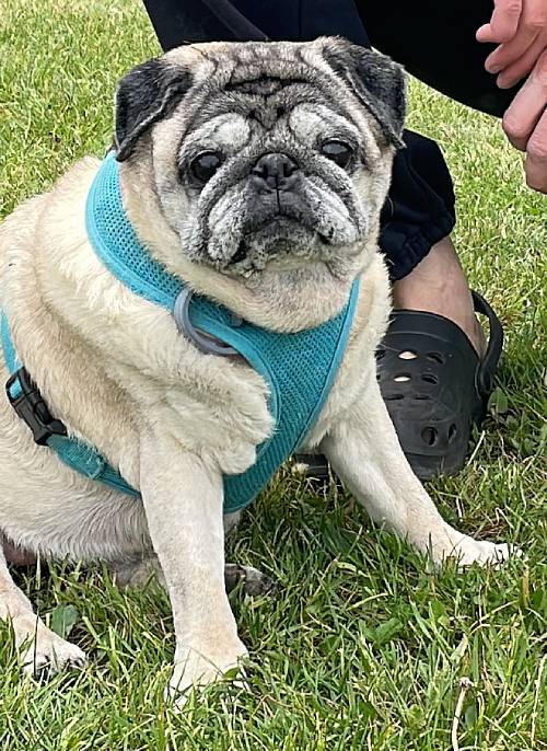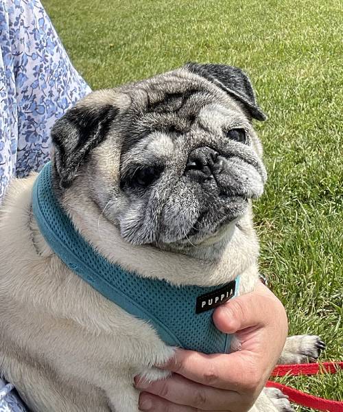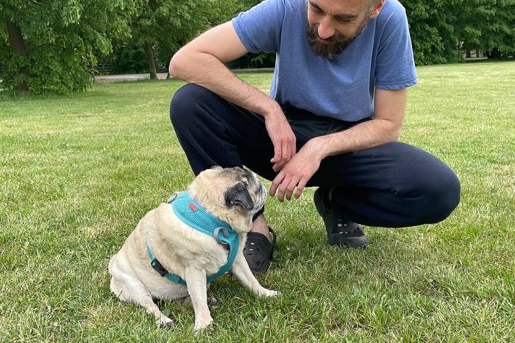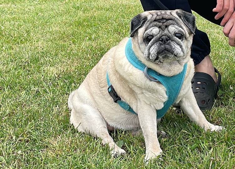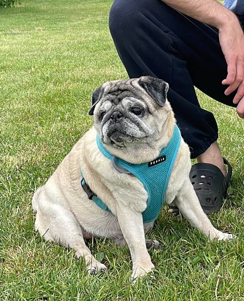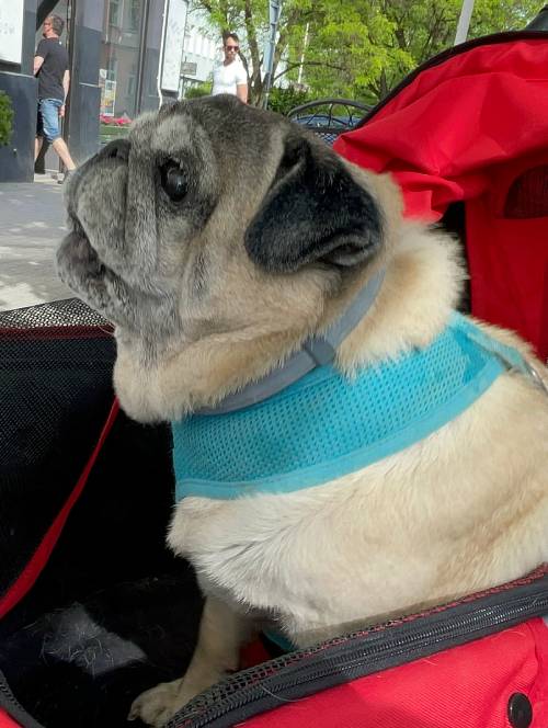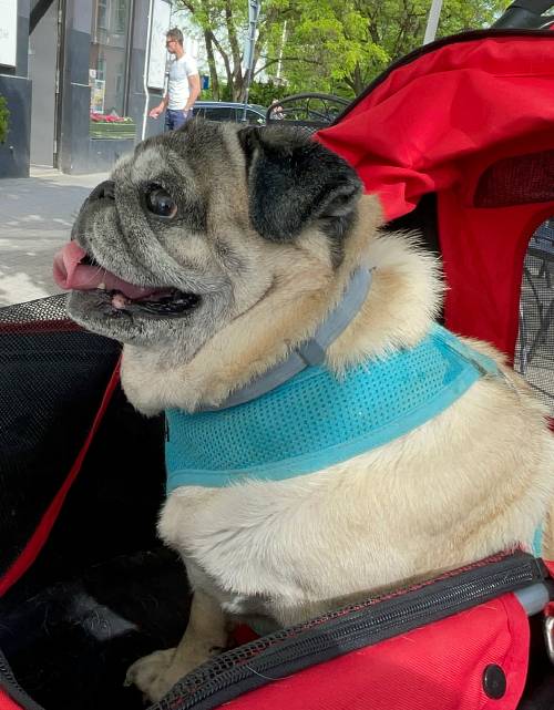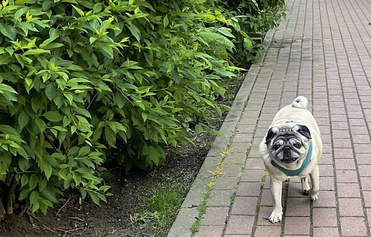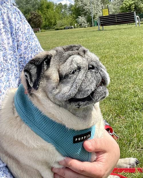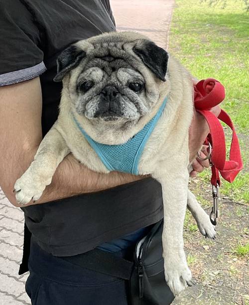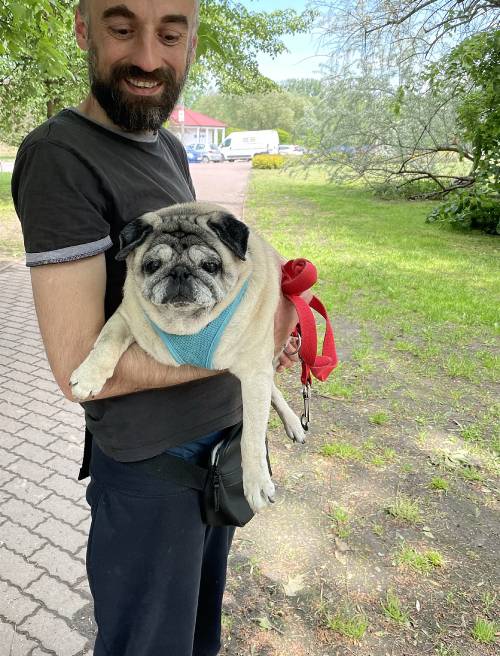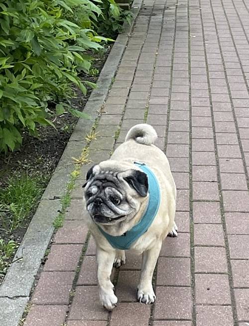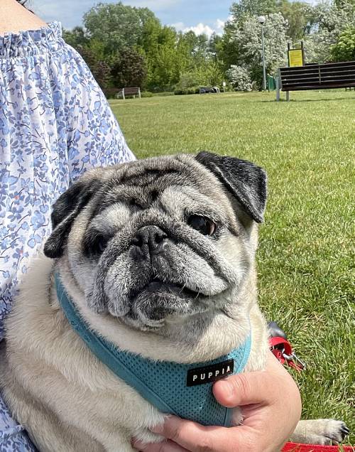 I niestety okazało się, że nie jest radosnym i ciekawym świata mopsikiem, ale małą śmiertelnie przerażoną kulką, która trzęsie się ze strachu, gdy tyko poczuje pod stopkami chodnik lub trawę…