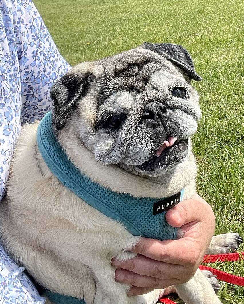 I niestety okazało się, że nie jest radosnym i ciekawym świata mopsikiem, ale małą śmiertelnie przerażoną kulką, która trzęsie się ze strachu, gdy tyko poczuje pod stopkami chodnik lub trawę…