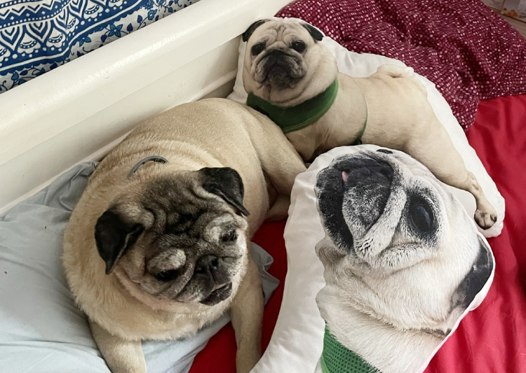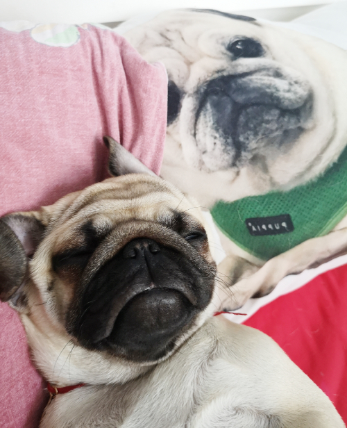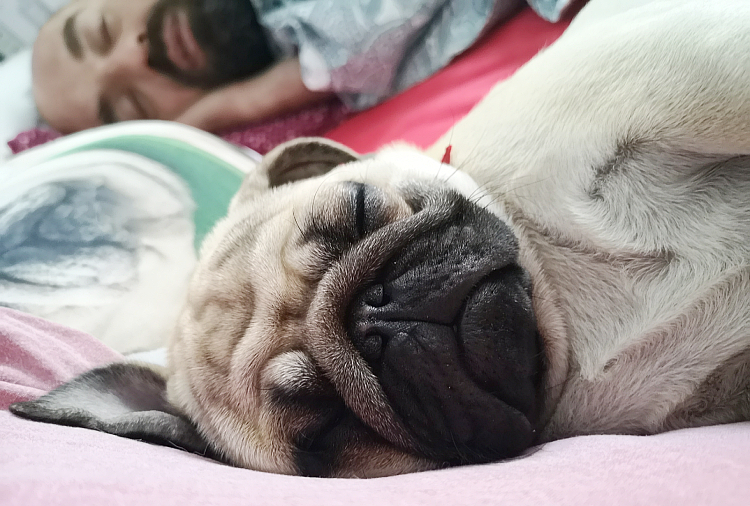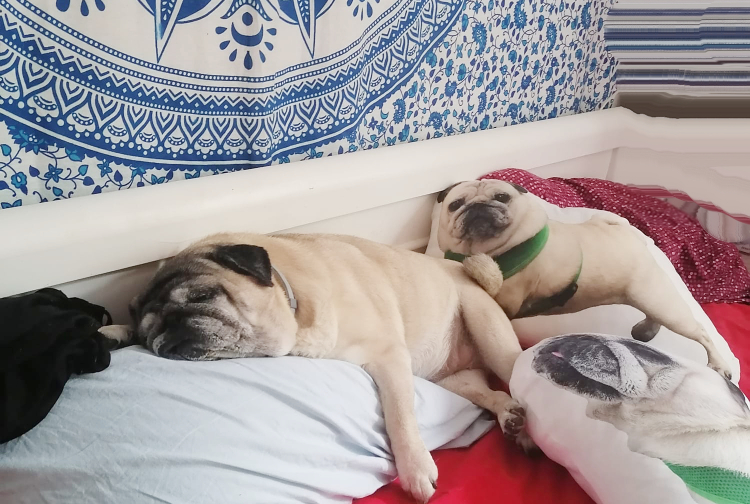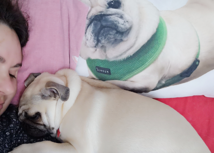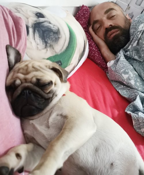 Łóżeczko, w którym śpimy razem z trójką naszych mopsiczek, to nasza święta, bezpieczna i dobra przestrzeń. To nasza łódź, którą sobie żeglujemy po oceanie nocy, pomiędzy światami, pomiędzy strefami, pomiędzy wspomnieniami, tęsknotami, marzeniami a snami… Tu zawsze jesteśmy razem.