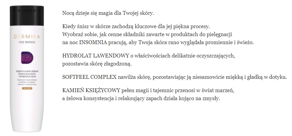 skład i opinie DERMIKA Insomnia Księżycowe serum nawilżająco-upiększające