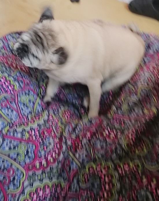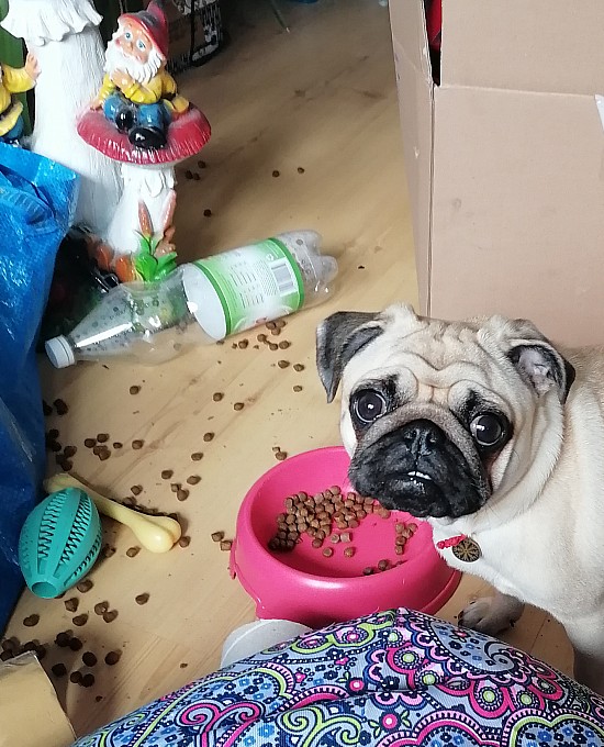 Dawno nie było wideorelacji z mopsiej bijatyki, prawda? No i proszę, nadrabiamy zaległości! Szczeniaczkowo-senioralna napierdalanka odbywa się u nas niemal codziennie, bo gdy tylko Matka Zazie lub Tata Marcin spuszczą oko z Misia Miszura – Małe Czuczu leci lotem torpedy, by wyznać swemu bóstwu uwielbienie i złozyć hojne dary w postaci kuksańców, barankowych pchnięć łepkiem i wwiercania się w misiowy brzuszek celem przyssania się do cyca. Za szczęnięcy fanatykiem religijnym leci biegnie zazwyczaj Matka Zazie albo ojciec Marcin celem nadzorowania przebiegu walki i ewentualnego ratowania Misia Miszura z opresyjnego uwielbienia Czuczełkowego…