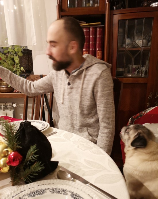 W naszej rodzinie kultywujemy różne tradycje… Tyle że Miś Miszur kultywuje swoje własne. Jedną z tradycji świątecznych Misia Miszura jest… publiczne zesranie się w kulminacyjnym momencie świątecznych obchodów. Kurtyna. Moją zaś tradycją jest zabieranie „mini-Kumoka” (w czarnym aksamitnym „wdzianku”) tam, gdzie zbiera się cała rodzina i tam, gdzie zawsze przez lata nam towarzyszył nam Ciuciuś…