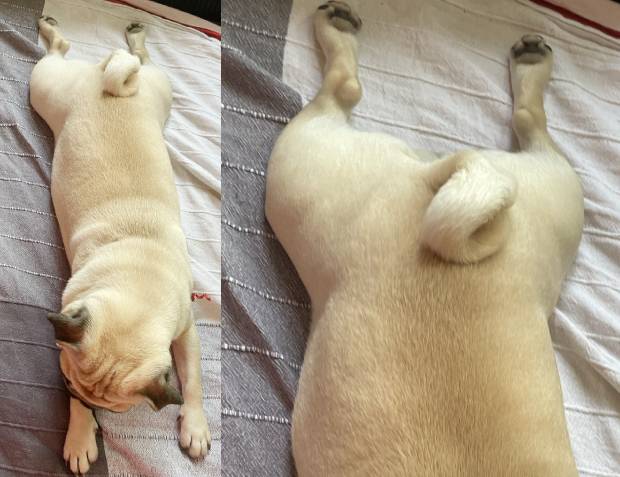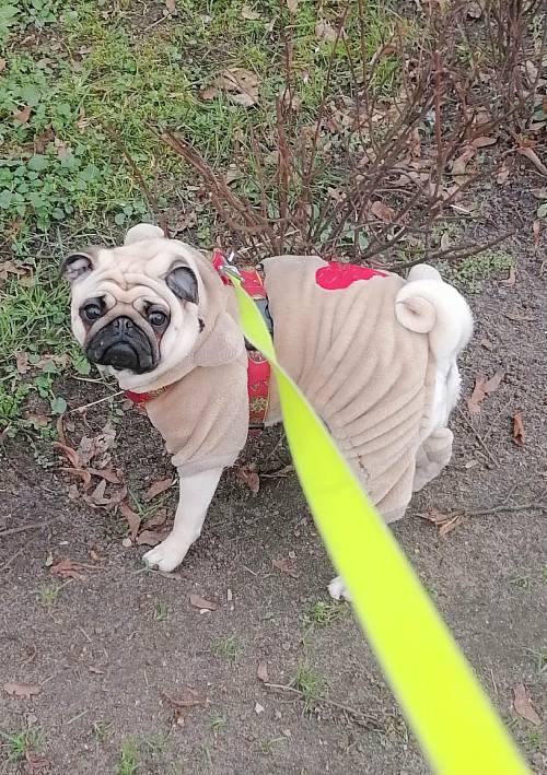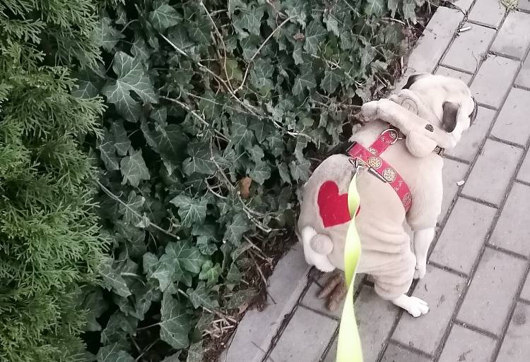 Prędzej czy później wszystko, co stanie na drodze małego mopsika, trafia do jego buzi, przechodzi przez mopsika i wydostaje spod ogonka.