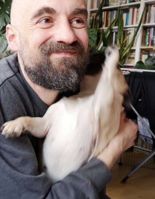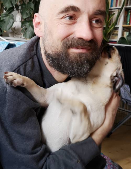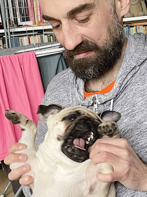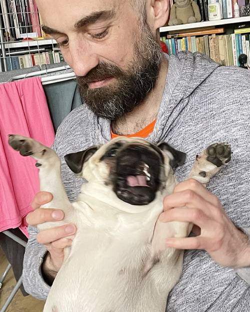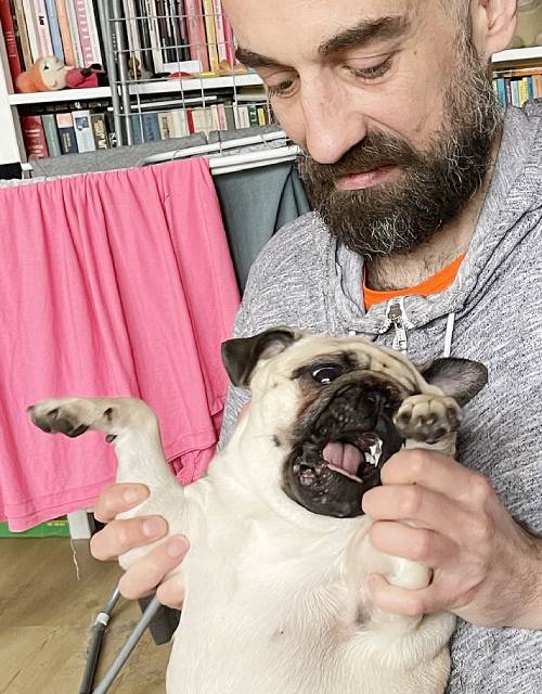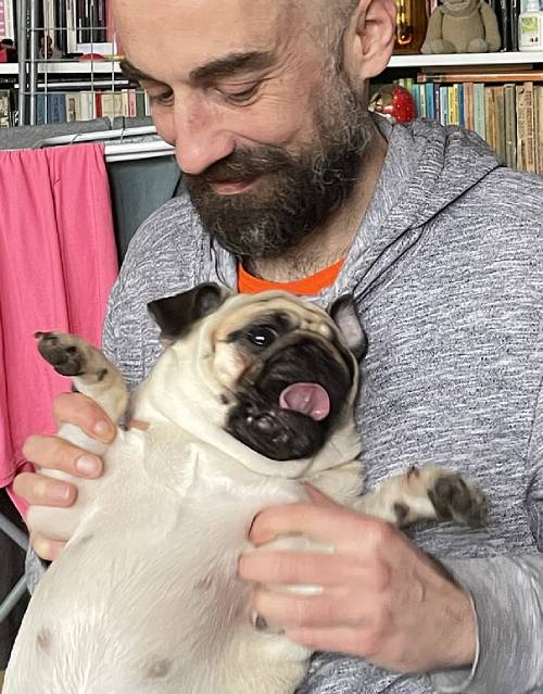 Powiem tak: Matka Zazie nie mogła sobie wymarzyć nie tylko lepszego towarzysza życia, ale i ojca dla swoich mopsich pociech. Oto człowiek sprawdzony w najtrudniejszych bojach – zarówno w walce o życie i zdrowie Kumoka oraz dobrostan senioralny Misia Miszura, ale i próby okiełznania szczenięcego popierdolenia Małego Czuczu. Wszystkie kochamy Marcinka jak pojebane, ale Czuczu wyraża to zdecydowanie najlepiej z nas! ;)