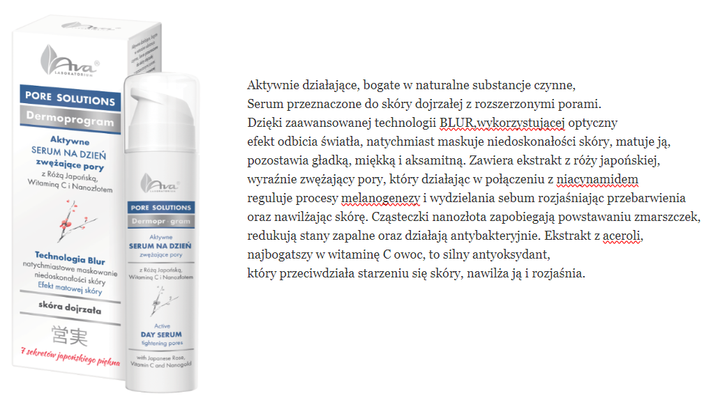 skład i opinie AVA Pore solutions Aktywne serum na dzień zwężające pory