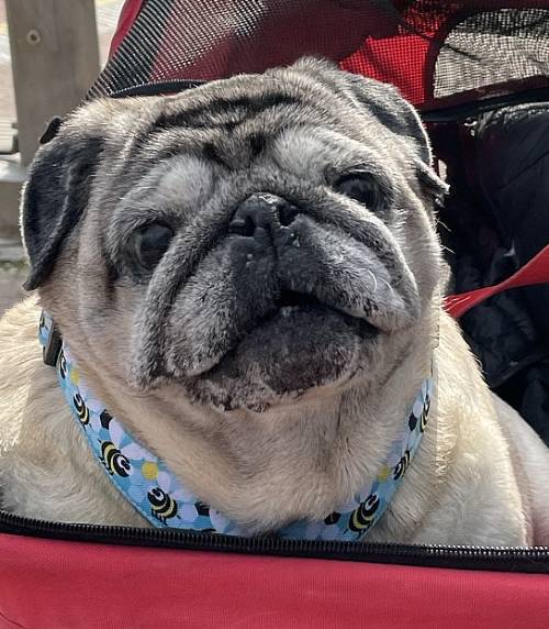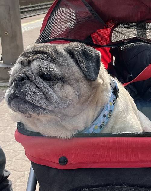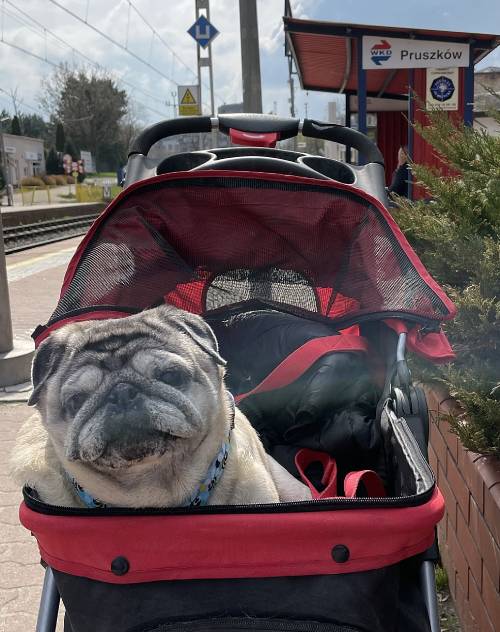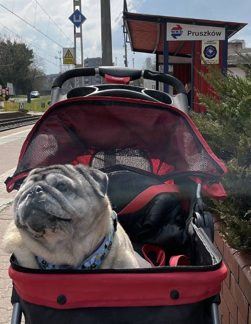 To puste miejsce obok Misia Miszura już zawsze będzie mnie boleć… Wiem, że ten mopsi emerycki wózeczek, któregoś dnia opustoszeje na zawsze i łamie mi to serce. Patrzę na tę stareńką ukochaną buzię, którą wychowałam od maluszka-szczeniaczka i nie mogę uwierzyć, że to moje ukochane mopsie bejbi jest już seniorką: niedowidzi, niedosłyszy, łapeczki ma coraz słabsze… Pamiętam, że supermocą Miszurka była umiejętność podskakiwania w miejscu na pół metra wzwyż… Nie umiem pogodzić się z mopsią starością, a zarazem czuję, że to największy skarb – móc być z nimi od początku ich życia aż po sam koniec…