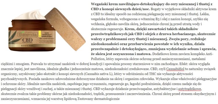 skład i opinie BIELENDA CBD nawilżająco-detoksykujący krem do twarzy