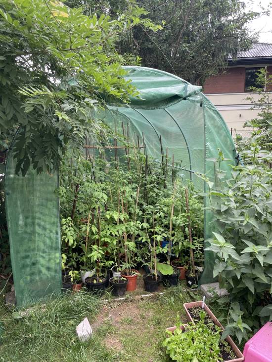 Byliśmy dzisiaj na kontroli ogrodowej: roślinność plantatorów-amatorów rośnie w siłę! Uspokojona tym faktem Matka Zazie rąbnęła się na leżak i pozostała na nim całe popołudnie, a Tata Marcin tańcował towarzysko z resztą rodziny oraz naszymi grubymi pajacami ogrodowymi…