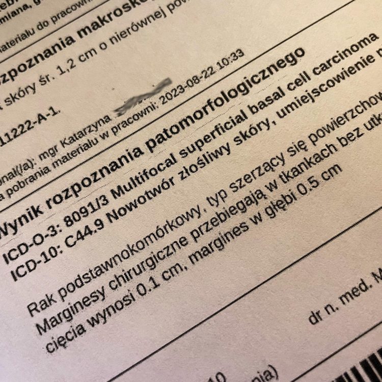 Poszłam prywatnie do dermatologa z jakąś pierdółką, ale lekarka była na tyle przytomna, że sama zainteresowała się inną ZUPEŁNIE NIEPOZORNĄ zmianą na skórze i zdecydowała, że trzeba ją natychmiast wyciąć!