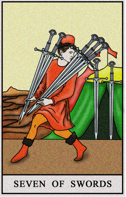 Podstęp, intryga, oraz zakłamanie to główne elementy, które charakteryzują kartę Szóstka Mieczy. Wyłaniają się z niej obrazy nieszczerości, kłamstw, kłótni, kradzieży, błędów w działaniu, a także planów i zamiarów, które nie przynoszą oczekiwanych rezultatów.