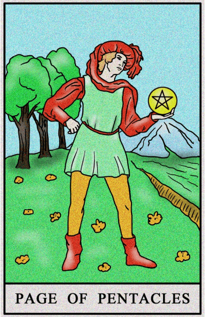Księżniczki (giermkowie), związane z sefirą Malkut, reprezentują królestwo, czyli ziemię. Jako że są związane z drzewem życia, mają rolę czynienia, działania. Księżniczka ziemi, w tym przypadku Giermek Denarów, symbolizuje krystalizację działań, które nabierają formy fizycznej. Jej charakter jest badawczy, ale nie intelektualnie badawczy; opiera się na konkretnych, namacalnych argumentach. Jest jedną z najłagodniejszych kart w Tarocie, nie niesie za sobą agresji.