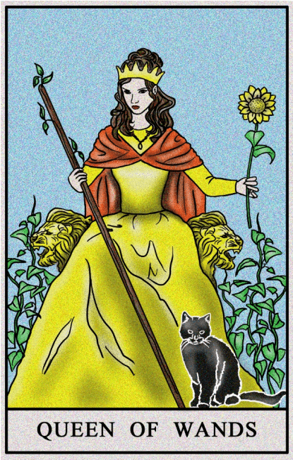 Królowa Buław to postać zdecydowana, dominująca, wykazująca się mocnym praktycyzmem. Jako trzydziesta piąta karta talii, będąca ósemką, reprezentuje mocną, pragmatyczną jednostkę. Niemniej jednak, obecność żywiołu ognia sprawia, że pozorna trzeźwość i praktycyzm ukrywają w sobie niezwykły temperament. To zjawisko jest zauważalne w naszej ruchliwości, skłonności do zmian oraz w rozwiniętym instynkcie, który pomaga nam podejmować decyzje, jakbyśmy każdy krok planowali z dużą precyzją i długotrwałym namyślem. To cecha charakteryzująca profesjonalistów.