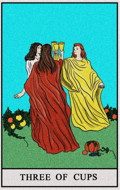 Jeśli pytamy o ewentualne trudności w związku, karta Trójki Pucharów potwierdza istnienie osoby trzeciej, dlatego warto zachować czujność. W przypadku pytań o charakter partnera, może wskazywać na osobę, która preferuje swobodę i intensywne życie towarzyskie, unikając na razie poważnych zobowiązań. W stałych związkach Trójka Pucharów przynosi radość, pomyślność oraz okres pełen spotkań towarzyskich, a także pozytywne nowiny, takie jak narodziny dziecka. Jednocześnie może sygnalizować związek niezobowiązujący, pełen szaleństwa i przygód, choć nie zawsze stały.