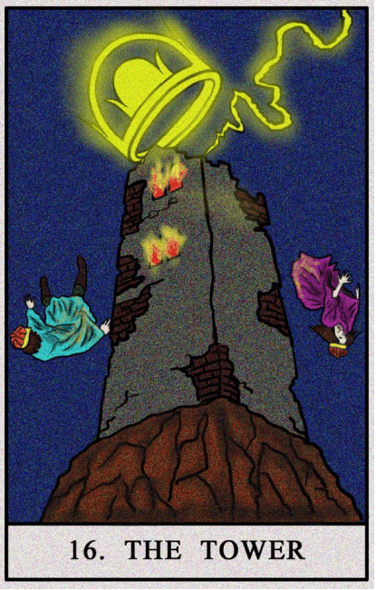 Karta tarota WIEŻA, obok Śmierci i Diabła, budzi w nas często lęk i przerażenie. Wizualnie przedstawia ludzi spadających z wysokiego budynku, co symbolizuje upadek życiowy i katastrofę. Ta karta symbolizuje całkowity rozpad wszystkiego, co stanowiło dotychczasową podstawę istnienia. To moment pełnego załamania, bezradności w obliczu nieuchronnej woli nieba, ale jednocześnie jest to katharsis, oczyszczenie duszy z ciążących na niej grzechów i cierpień.