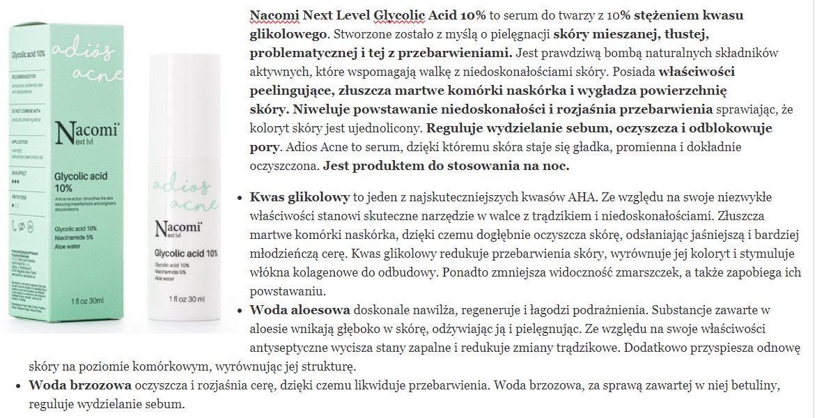 skład i opinie NACOMI Next level Adios Acne Glycolic Acid 10% (kwas glikolowy 10%)