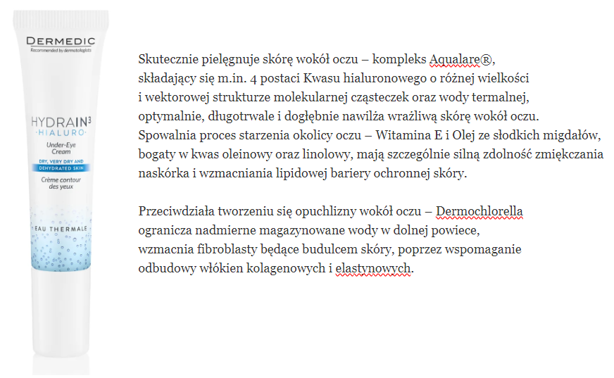 skład i opinie DERMEDIC Hydrain3 Hialuro Nawilżający krem pod oczy