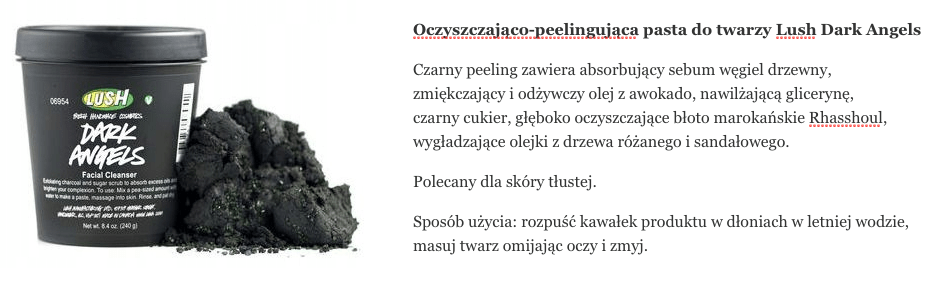 skład i opinie LUSH Dark Angels pasta oczyszczająca do twarzy i ciała