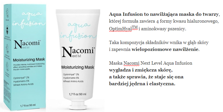 skład i opinie NACOMI Next level Aqua Infusion – Moisturizing Mask (nawilżająca maska do twarzy)