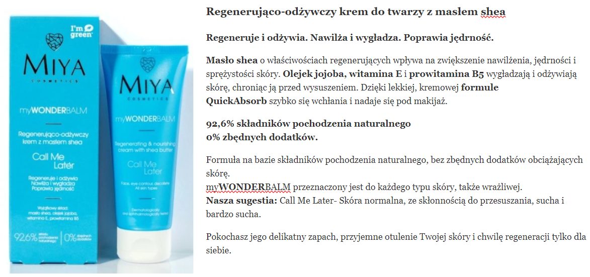 skład i opinie MIYA myWONDERbalm Call Me Later Regenerująco-odżywczy krem z masłem shea