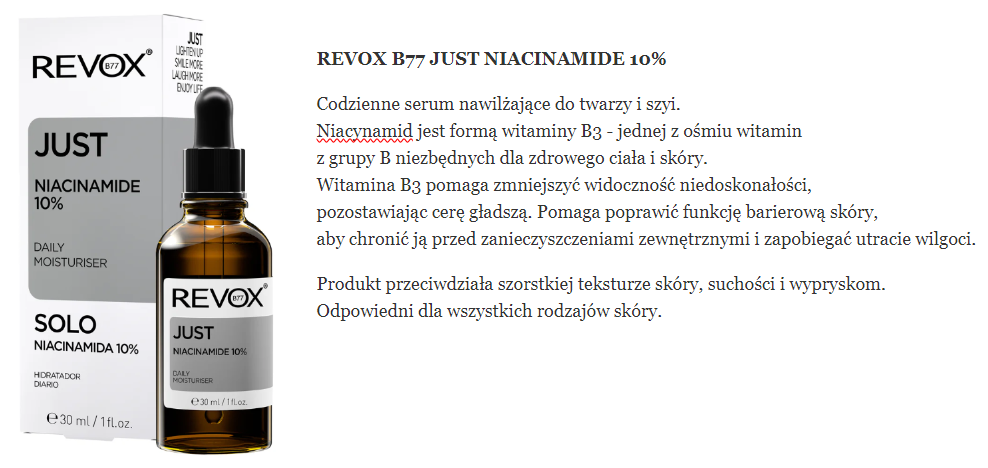 skład i opinie REVOX B77 Just Niacinamide Serum do twarzy z niacynamidem