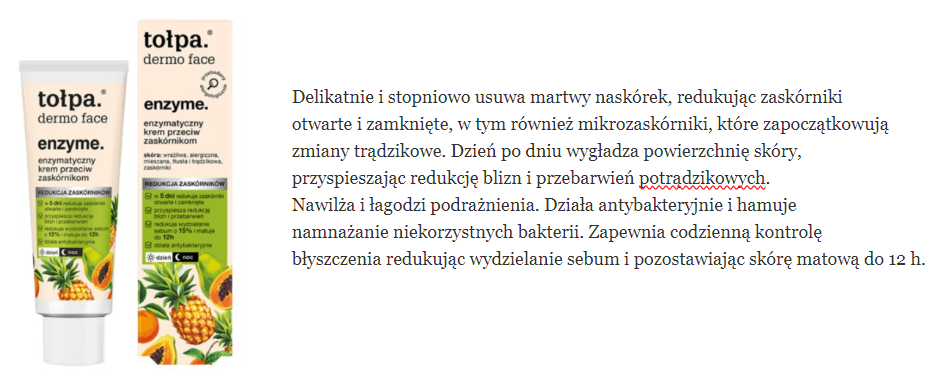 skład i opinie TOŁPA Enzyme enzymatyczny krem przeciw zaskórnikom