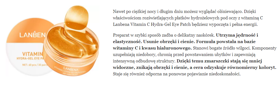 skład i opinie LANBENA Hydra Gel Eye-Patches Vitamin C Rozjaśniające żelowe płatki pod oczy z witaminą C