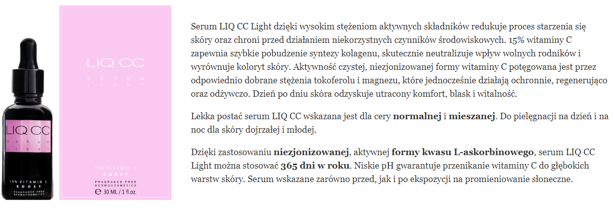 Recenzowałam ostatnio moje dwie zimowe wtopy z serami z witaminą C, które nie zrobiły kompletnie nic na mojej skórze – jedno było marki MIYA, a drugie REVOX. Uparłam się jednak, by doświadczyć cudowności witaminy C – zwłaszcza wiosną, gdy na światło dzienne wychodzą moje przebawienia posłoneczne – i kupiłam polecane w internetach serum LIQ CC – wersję lżejszą dla cery normalnej i mieszanej. Czy to była moja kolejna wita-C-minowa porażka czy wręcz przeciwnie? ;)
