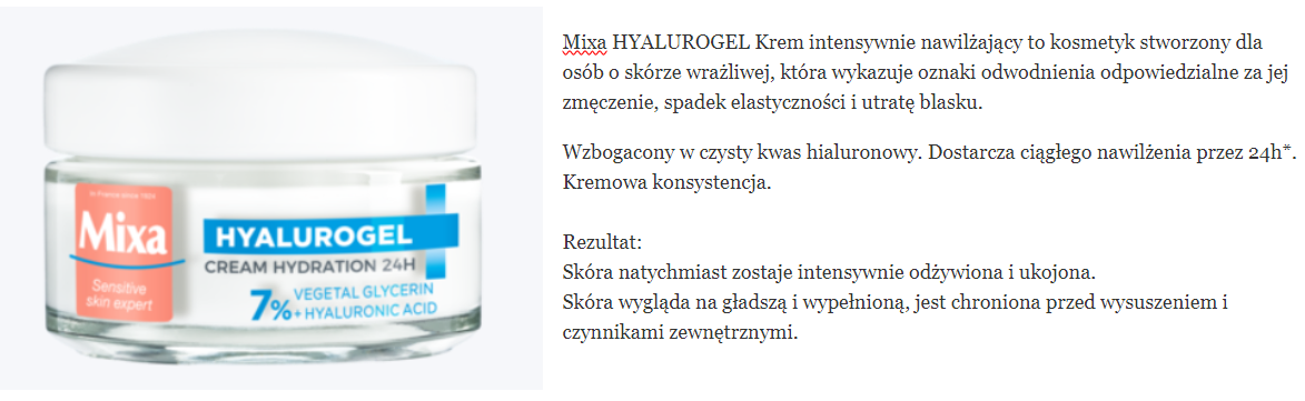 skład i opinie MIXA Hyalurogel 7% Krem intensywnie nawilżający