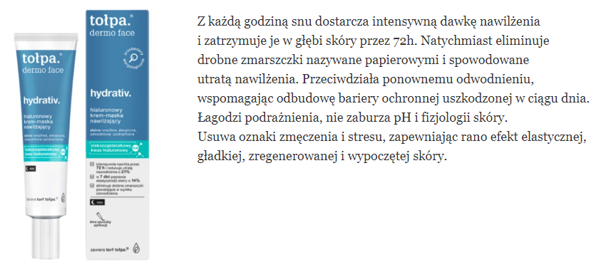 skład i opinie TOŁPA Hydrativ Hialuronowy krem-maska nawilżający – na noc