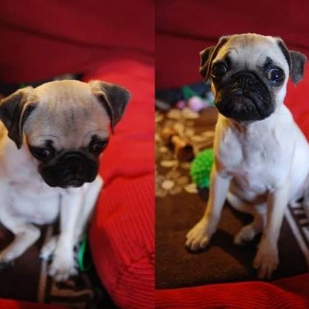 Jesteśmy… przerażone! nigdy realnie nie planowałyśmy posiadania psa, a mopsy oglądałyśmy tylko na youtube’owych filmikach…